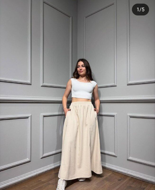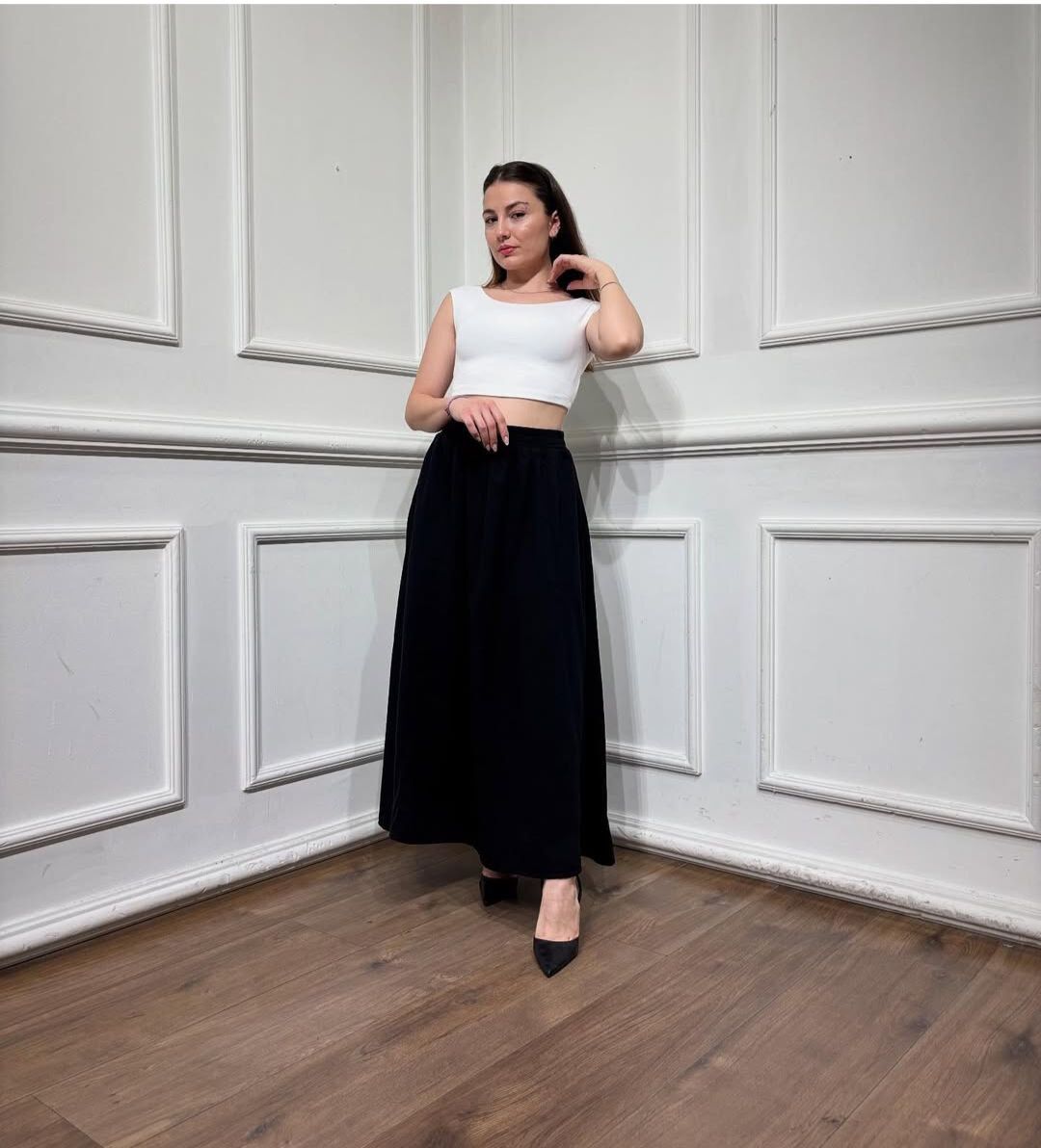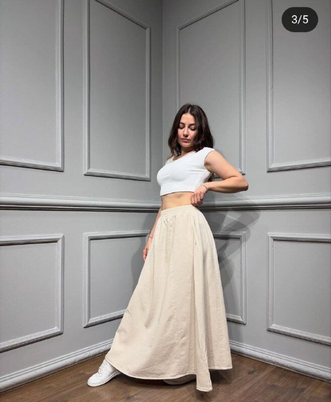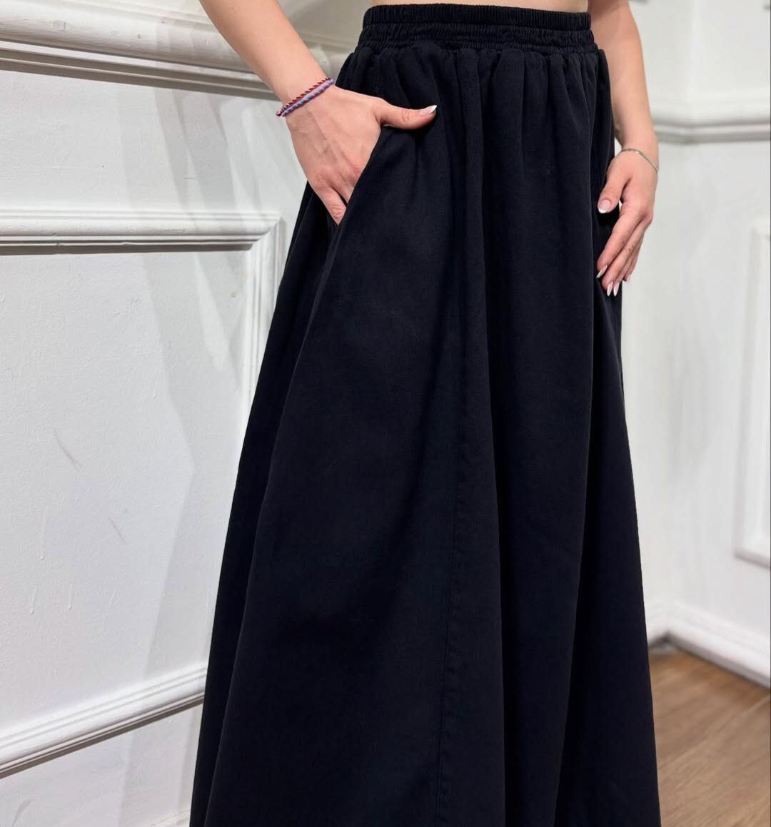 Maxi̇ Boy Gabardi̇n Beli̇ Lasti̇kli̇ Bol Etek 4443